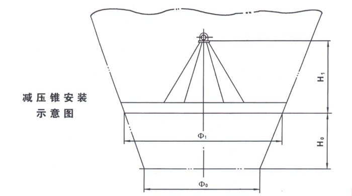 6、當選用VB1201和VB1202以上料斗,且倉容大于50m3時,應選配相應的減壓錐,以免過大的倉壓影響料斗的正常運行。